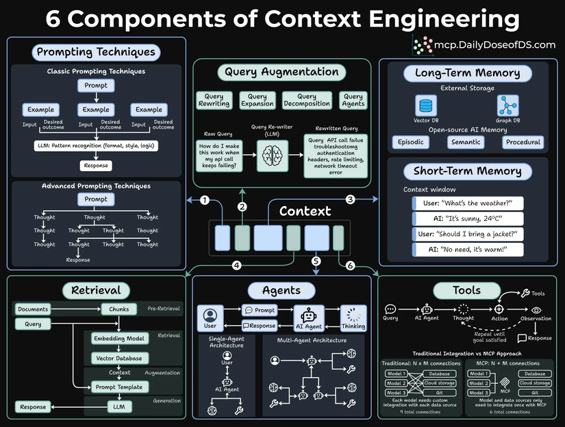 Context Engineering đã thay đổi nhận thức đó: phép màu thực sự nằm ở toàn bộ pipeline thông tin – bạn cung cấp ngữ cảnh gì, ngữ cảnh đến từ đâu, được truy xuất và định dạng ra sao, mô hình có thể làm gì với công cụ, và nó nhớ gì qua các phiên làm việc.