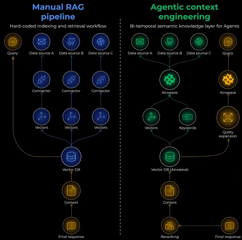 Công cụ mã nguồn mở như Airweave giải quyết toàn bộ quy trình. Bạn chỉ cần đồng bộ một lần là có thể truy cập thống nhất từ Notion, Google Drive, cơ sở dữ liệu và nhiều nguồn khác mà không cần viết connector riêng cho từng hệ thống.