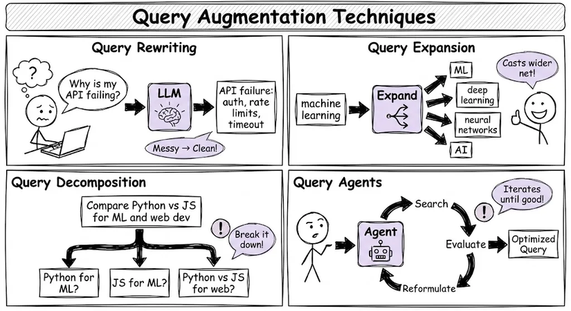 Tăng cường truy vấn giải quyết vấn đề này bằng nhiều kỹ thuật: